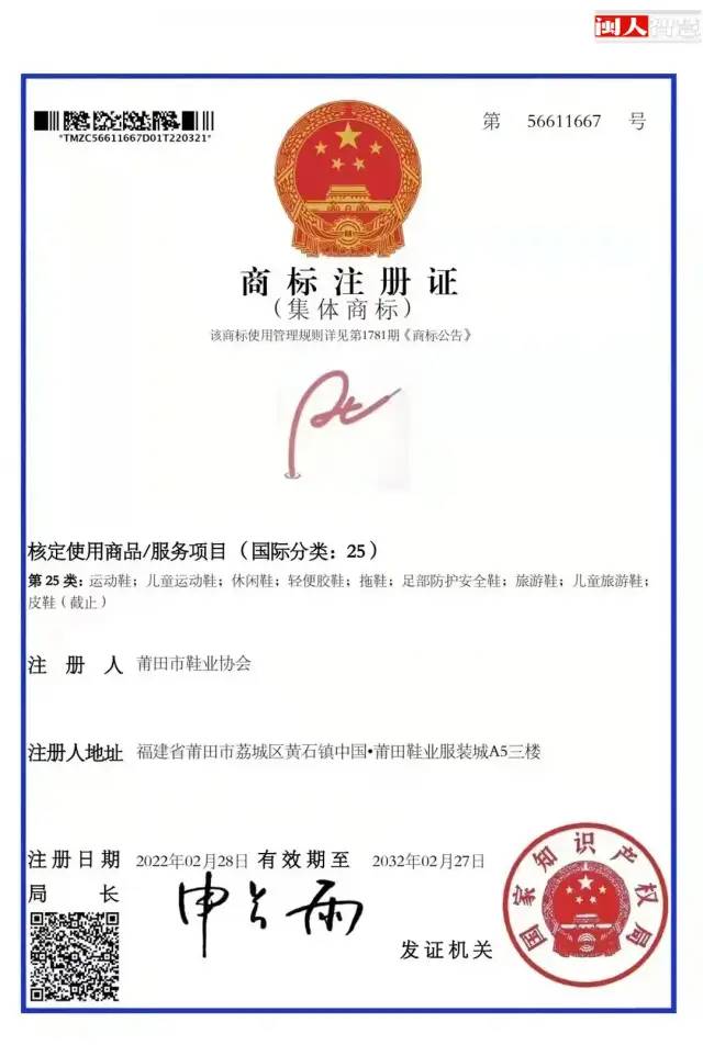 圖:莆田鞋集體商標注冊成功 / 來源網(wǎng)絡