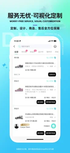我們提供定制、設(shè)計(jì)、商品、售后、服務(wù)五大保障,全程可視化跟蹤,讓你隨時(shí)掌握定制進(jìn)度。從商品開(kāi)箱記錄到球鞋設(shè)計(jì)滿(mǎn)意,再到定制成品鞋滿(mǎn)意,我們?nèi)套o(hù)航。更有超長(zhǎng)售后保障,讓你無(wú)后顧之憂(yōu)。
